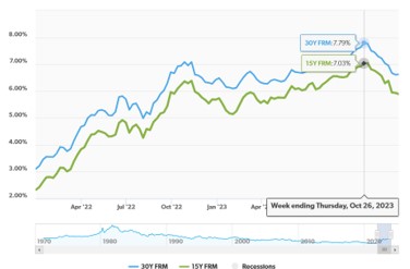 Interest rates have a lot to do with the condo market. At the beginning of 2022, 30 year rates were hovering just above 3%. A year later at the beginning of 2023, 30 year rates were dancing around 6.5%. By the end of October 2023 rates almost reached 8%, then finished 2023 right around where they started: approximately 6.5%.
