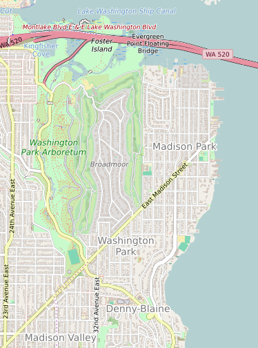 One of the most attractive features of Washington Park is its location. Nestled between Lake Washington to the east Washington